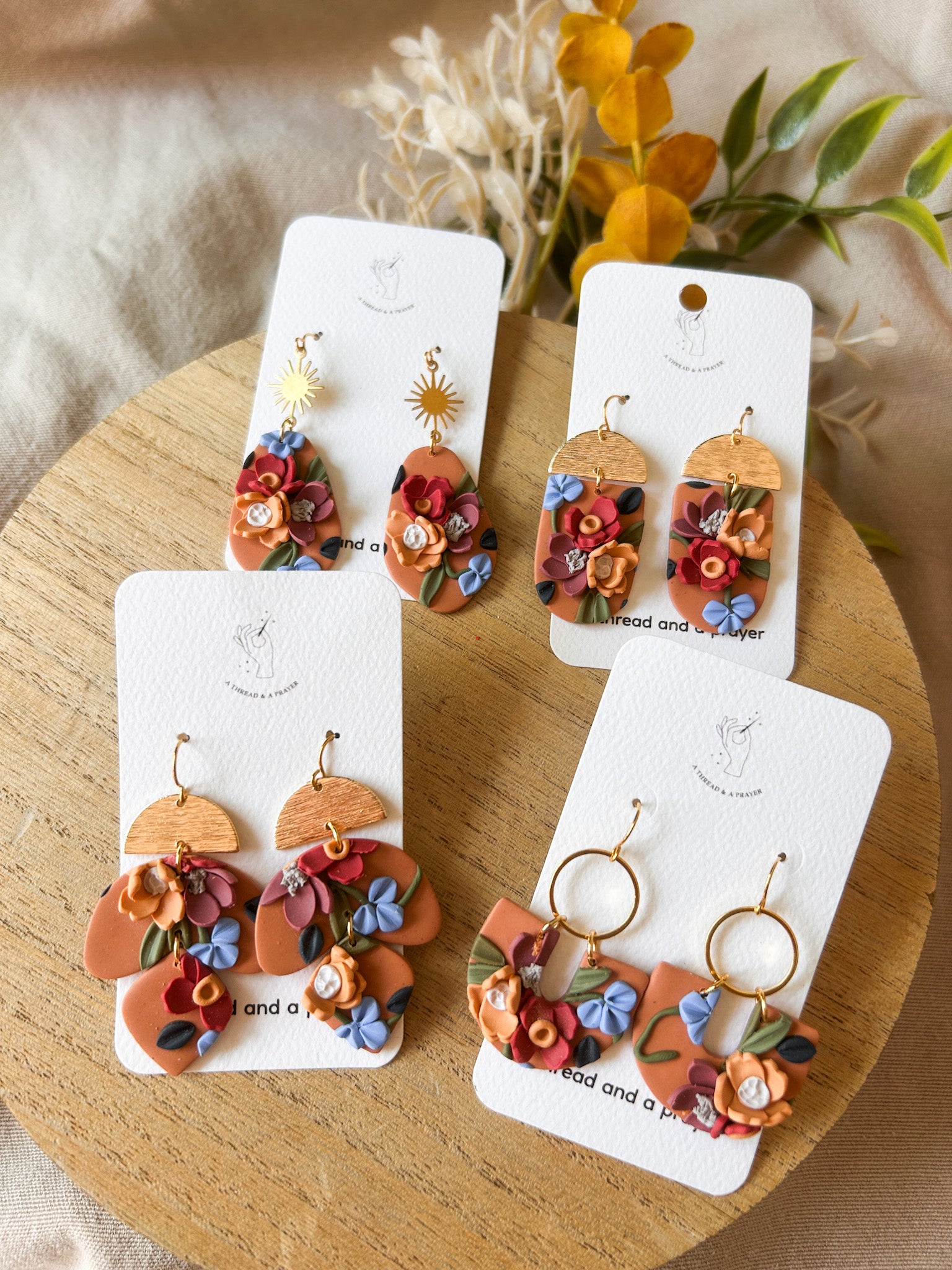 Autumn Garden Floral Earrings - Orange Base | Dainty Flower Earrings | Trendy Styles | Lightweight | Autumn