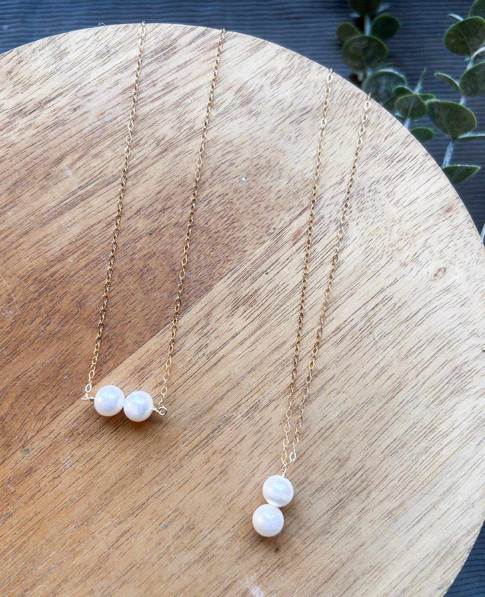 These adorable pearl necklaces are made with 18 inch gold fill necklace chains.
