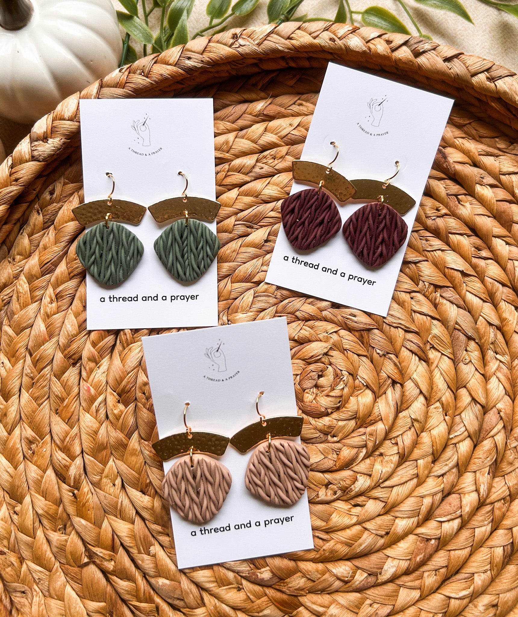 These handmade polymer clay earrings are perfect fall colors in knit clay styles perfect for the winter season.